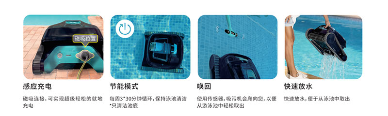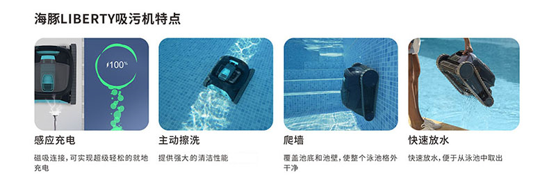 同樣出色的清潔性能-現在是無線的! LIBERTY 200新一代無線吸污機特點: 采用了全新無插孔設計,直接磁吸到位,充電靈活,安全防水;履帶驅動,強勁有力; 搭配簡單易用過濾籃。 LIBERTY 300新一代無線吸污機特點: 采用了全新無插孔設計,直接磁吸到位,充電靈活,安全防水;節能模式,可在短清潔周期內保持游泳池一周的清潔; 履帶驅動,強勁有力; 搭配簡單易用過濾籃; 可選擇只清潔池底或池底和池壁;可使用感應器“喚回”吸污機。