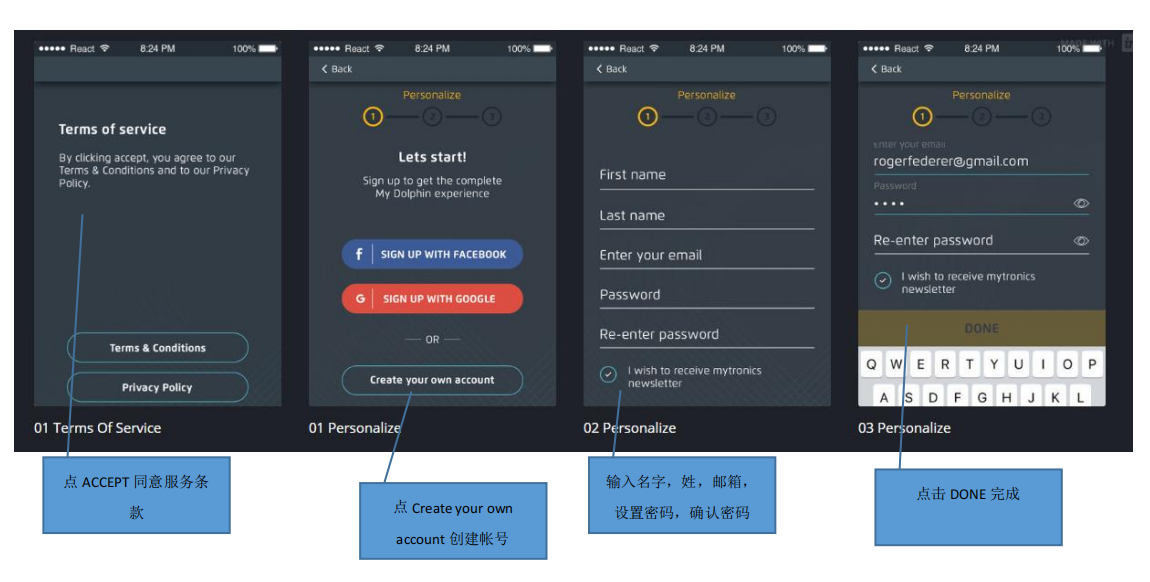 三、打開手機藍牙,啟動“My Dolphin plus”APP,如沒開藍牙會提示打開藍牙,進入客戶注冊界面: