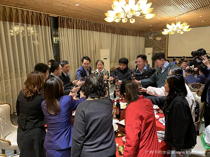 隨后,我們到達清遠美麗鄉(xiāng)村酒家正式進入年會章程。慶典開始,領(lǐng)導對2021年進行總結(jié)及未來規(guī)劃。2021年依舊在疫情陰霾的籠罩下艱難前行,所幸,我們千葉公司人員團結(jié)一心,共克時艱,始終專注于先進水處理產(chǎn)品的研發(fā)、技術(shù)的更新;嚴格把控產(chǎn)品質(zhì)量;客戶優(yōu)先,把服務(wù)做到極致,展望新的2022,我們依然充滿希望。