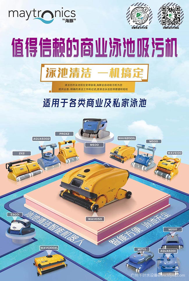 無(wú)數(shù)案例證明,Maytronics海豚泳池吸污機(jī)耐用可靠,能滿足商業(yè)泳池日常高強(qiáng)度、高頻率的清潔使用,在維持水質(zhì)清澈的同時(shí),大大降低換水頻率,為用戶降本增效。廣州千葉作為一站式泳池水處理設(shè)備采購(gòu)服務(wù)商,始終致力于引進(jìn)和研發(fā)優(yōu)質(zhì)泳池設(shè)備,為用戶創(chuàng)造理想泳池環(huán)境。