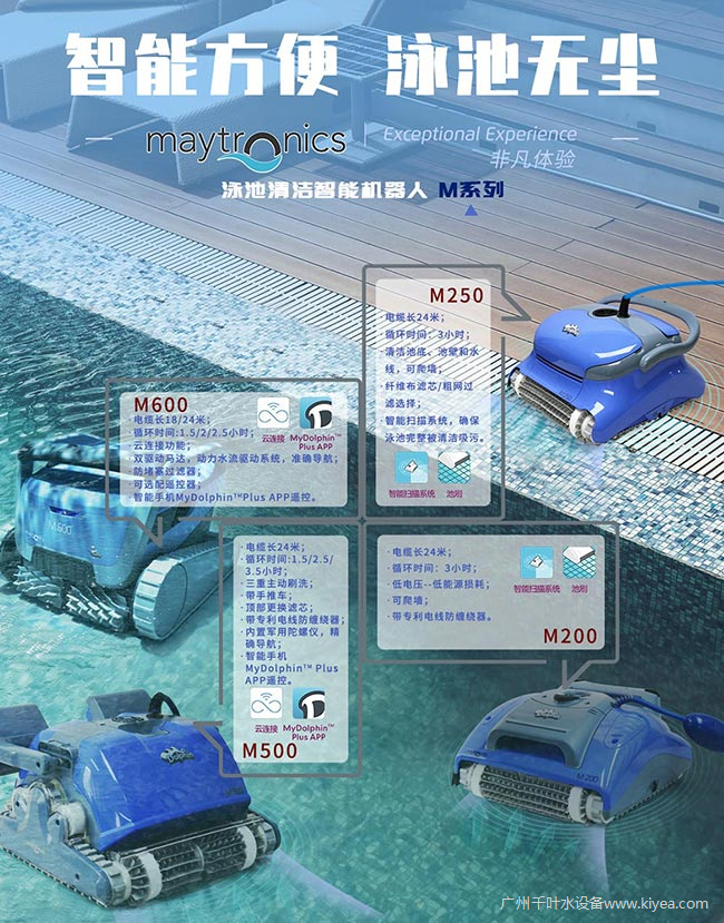 Maytronics海豚品牌創(chuàng)立于1983年,在泳池自動(dòng)清潔領(lǐng)域具有深厚的技術(shù)與生產(chǎn)實(shí)力,其泳池吸污機(jī)產(chǎn)品型號(hào)豐富、性能先進(jìn),占據(jù)全球同類產(chǎn)品銷售額很重的比例。廣州千葉水設(shè)備有限公司(以下簡(jiǎn)稱廣州千葉)是Maytronics海豚泳池吸污機(jī)中國(guó)區(qū)總代理,所代理產(chǎn)品均為以色列原裝進(jìn)口,十余款型號(hào)可全面適配不同大小、材質(zhì)、類型的商業(yè)及私人泳池。