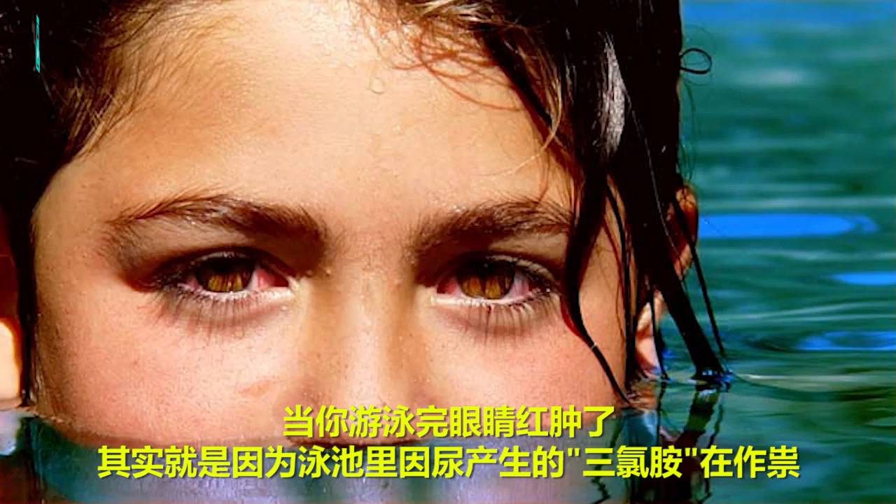有的時候游泳后會發現眼睛紅腫了,其實就是因為泳池里的尿和消毒氯反應所產生的“三氯胺”在作祟。