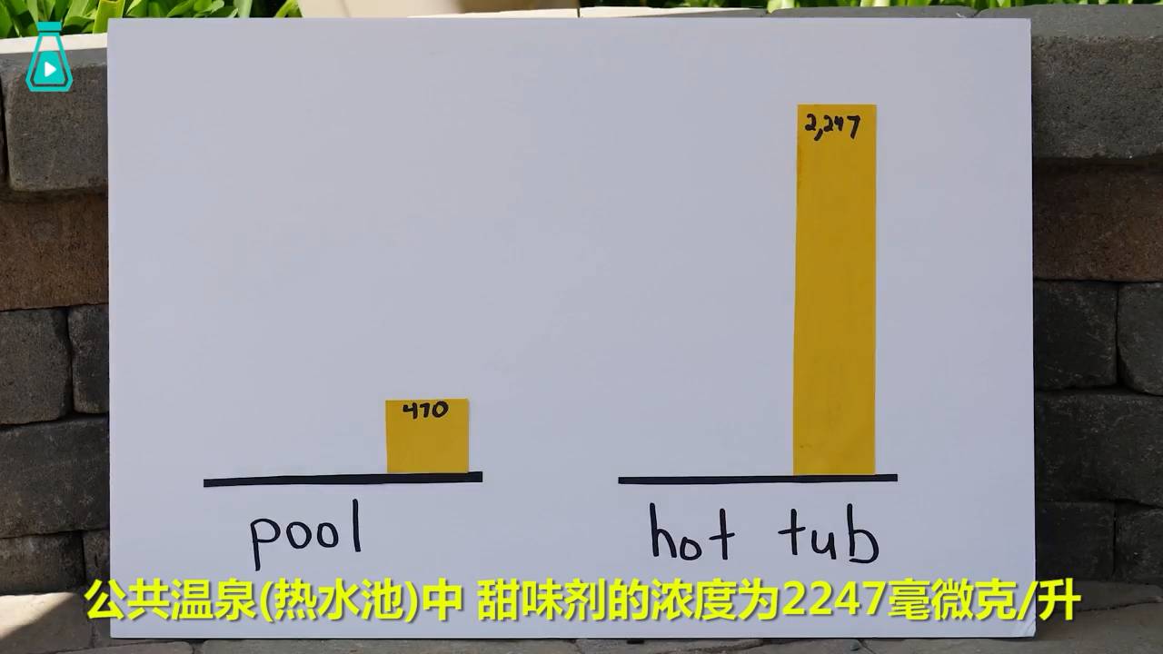 Lindsay曾經抽樣調查了20個公共泳池和10個公共溫泉,其中公共泳池里甜味劑的濃度為470毫微克/升,而公共溫泉(熱水池)中甜味劑的濃度為2247毫微克/升。