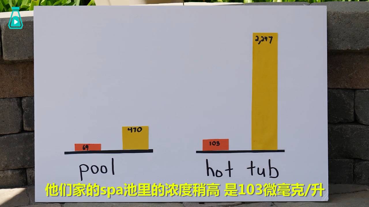 Mark采集的樣品結果如何呢?他自家泳池中甜味劑的濃度為69微毫克/升,雖然低于平均值很多,仍然相當于有差不多3.7升的尿在里面。Mark的私人熱水池里甜味劑濃度稍高,是103毫微克/升。