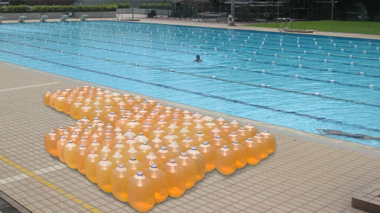 如果取平均濃度含量來計算“奧林匹克標準泳池”的話,將會有超過491升的尿……