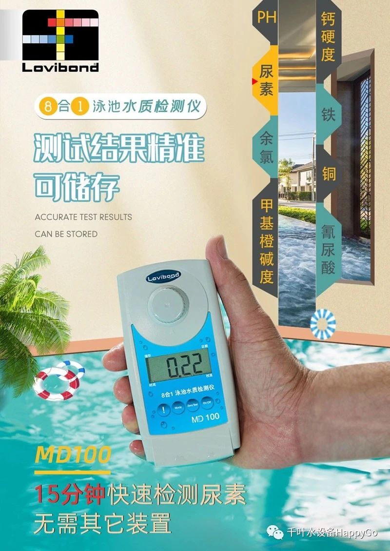 不管是無心之過、還是有意為之,相信泳池管理者對泳池里的尿,都非常頭疼。如何快速檢測泳池中的尿素,做出相應的措施呢?Lovibond 羅維邦MD100 8合1泳池水質檢測儀是一款多參數光度計,易于隨身攜帶,適用于池邊快速簡單地水質測試。無需其他裝置,8合1泳池水質檢測儀可測定國家泳池水質標準的8款參數。套裝中配有測試試劑,開機即可使用,是您泳池水質管理的得力助手。