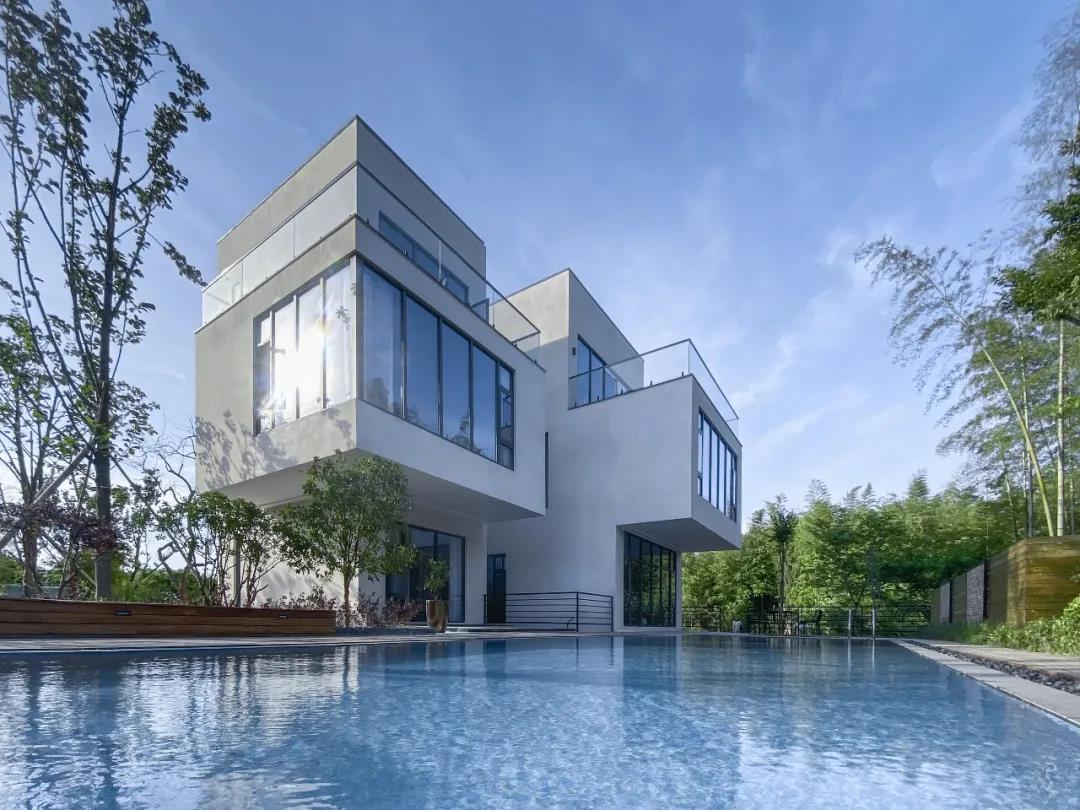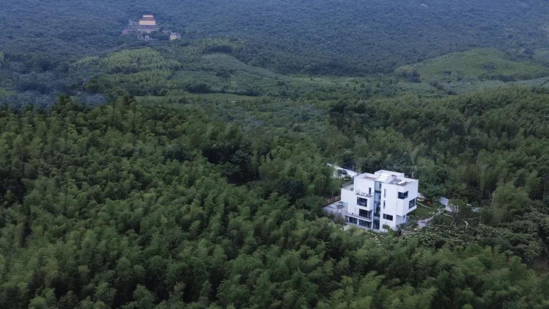 松樓位于江蘇省無錫市,建筑通體呈現簡約的白色,通過方盒子的穿插組合,形體上的退讓或出挑,不僅豐富空間類型,獲得更多能夠親近自然的灰空間又能保持整體純粹的建筑形式。最終讓建筑既融入在這片綠意盎然。建筑、遠山、竹林、流水共同構建出了現代人所向往的詩意棲居生活,樸素、自然、閑適。