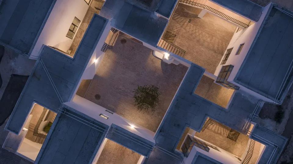 該項目位于甘肅省東鄉族自治縣唐汪鎮馬巷村。新民宿的建筑形態借鑒了當地的建筑傳統,采取了內合院的形式,在南北兩地塊上分別設計了兩組內合院建筑。每個內合院建筑由4個獨立的小院構成,半地下的設計也使得該建筑在該地區漫長的冬季中可以借助土地本身的保溫性而節能。