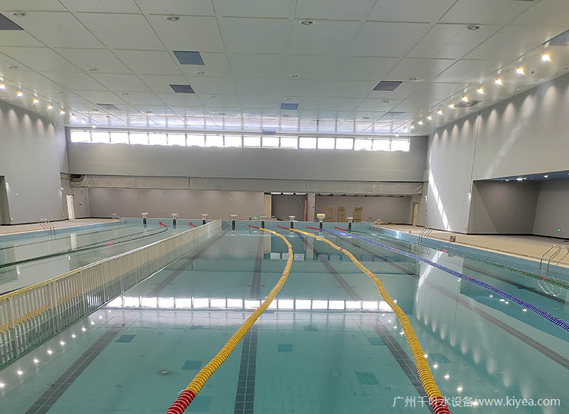 該游泳館水面面積達到了350㎡,如此大的水量,要保持水質衛生、水溫適宜、熱水充足,背后離不開廣州千葉高效節能的泳池水處理設備。當下立冬已至,寒潮來襲,在超低溫工況下,泳池恒溫加熱設備易出現制熱不足、損耗增加、停機等問題。該全民健身中心要求泳池恒溫加熱設備必須滿足游泳館四大需求: