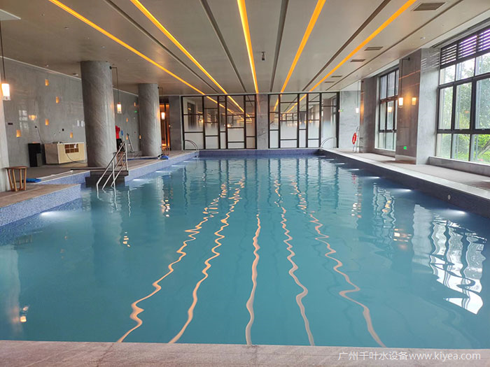 經過多方考察,該酒店最后配置了廣州千葉旗下的AQUA愛克泳池循環水泵和過濾砂缸組成的泳池循環過濾系統,以及AQUA愛克三集一體恒溫除濕熱泵來處理游泳池濕度過高的問題。