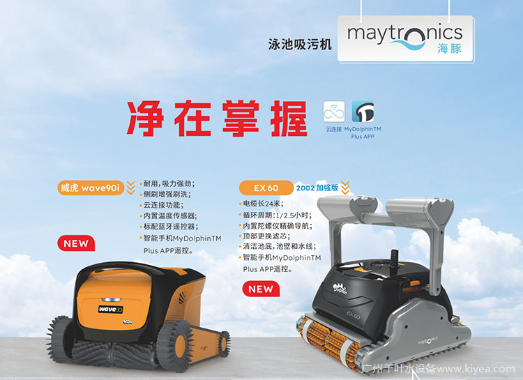 Maytronics海豚威虎wave90i泳池吸污機(jī),是全新一代基于海豚平臺的物聯(lián)網(wǎng)型泳池吸污機(jī),可連接手機(jī)APP My Dolphin使用,在APP上可以設(shè)置清潔周期、清潔模式,以及一周的清潔計(jì)劃。清潔力出眾,雙向清刷帶側(cè)刷全面增強(qiáng)刷洗效果,讓池底和池壁煥然一新。操作簡單易上手,標(biāo)配藍(lán)牙遙控器,具備人工遙控和聲控、過濾袋提示、等待提起、出水自動停機(jī)等功能,一鍵操作輕松搞定;還帶有防扭器電纜線,無需擔(dān)心電纜纏繞。