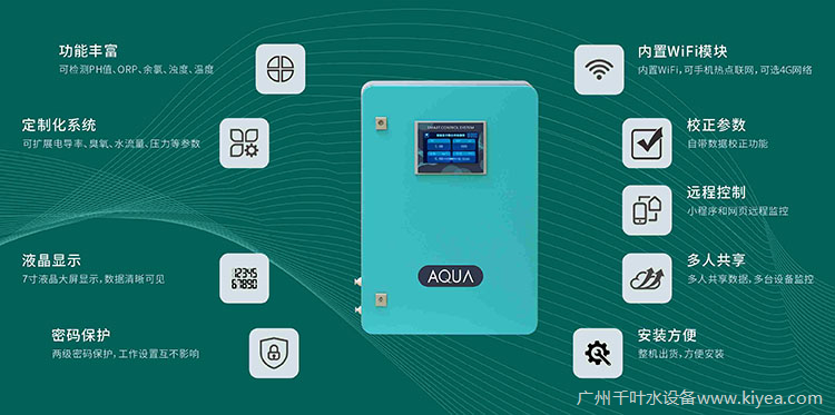 配備7寸液晶大屏,界面簡單明了,數據清晰可見,方便日常操作。內置WiFi,可手機熱點聯網。可自動監測、記錄存儲、傳輸數據到數據監控平臺,無論您在辦公室還是出差,都可以通過手機小程序或電腦端軟件,遠程查看水質數據