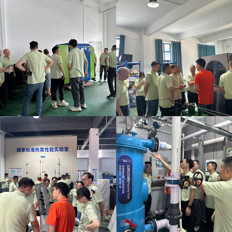 在培訓(xùn)會(huì)議間隙,相關(guān)負(fù)責(zé)人便帶領(lǐng)員工深入愛(ài)克熱泵工廠,探訪現(xiàn)代化生產(chǎn)線和測(cè)試泳池的設(shè)備機(jī)房,并零距離體驗(yàn)了Waternics水武仕珍珠巖過(guò)濾器的應(yīng)用效果,感受其真實(shí)魅力。