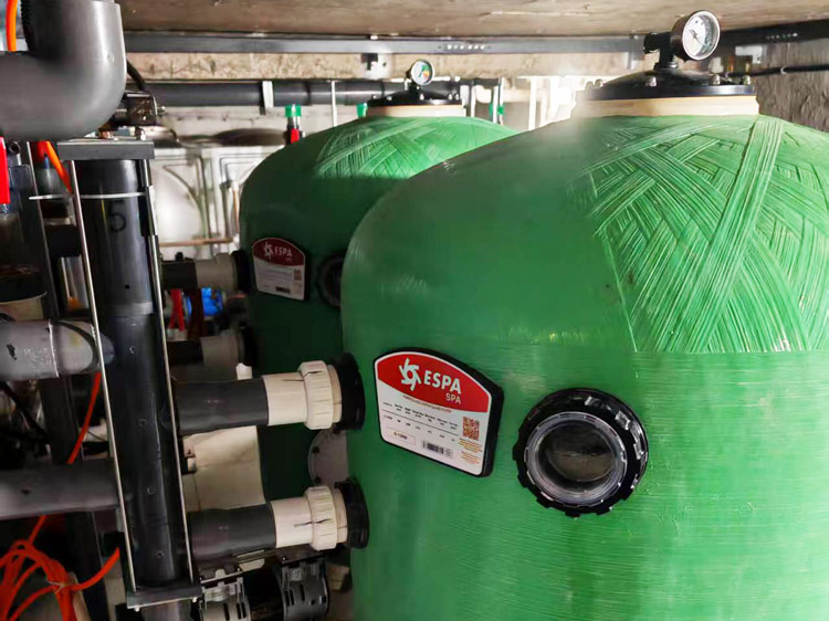 對于私人別墅泳池來說,水質的清潔、安全與穩定是業主們的核心期待,而長期運營中的成本控制也同樣不容忽視。為此,廣州千葉為該項目精準匹配了一系列國際品牌水處理設備,包括Pentair濱特爾泳池水泵、ESPA亞士霸過濾砂缸、BesgoValve貝斯克自動多項閥、Hymatic西美克中壓光觸媒殺菌器、RAYKEN瑞凱三集一體除濕熱泵等,每一款都在泳池水處理系統中扮演著關鍵角色。