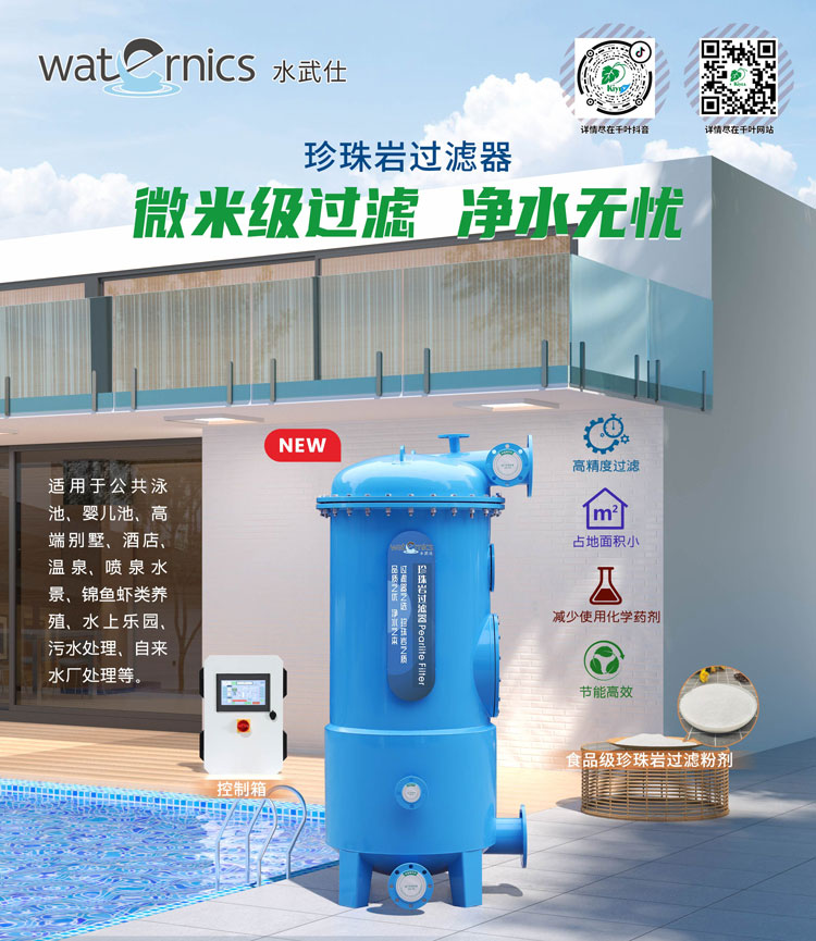 資料顯示,在關鍵的循環(huán)過濾環(huán)節(jié),廣州千葉選用了AQUA愛克循環(huán)水泵與Waternics水武仕珍珠巖過濾器。前者搭載4極電機,1450rmp轉(zhuǎn)速下運行噪音比普通水泵低 10dB以上,且同功率下流量翻倍,節(jié)能50%;后者以天然珍珠巖粉末為介質(zhì),實現(xiàn)1微米級高精度過濾(人類頭發(fā)直徑約60微米),對大腸桿菌、藻類等微生物去除率超99.5%,濁度低至0.1,出水指標遠遠高于國家標準。