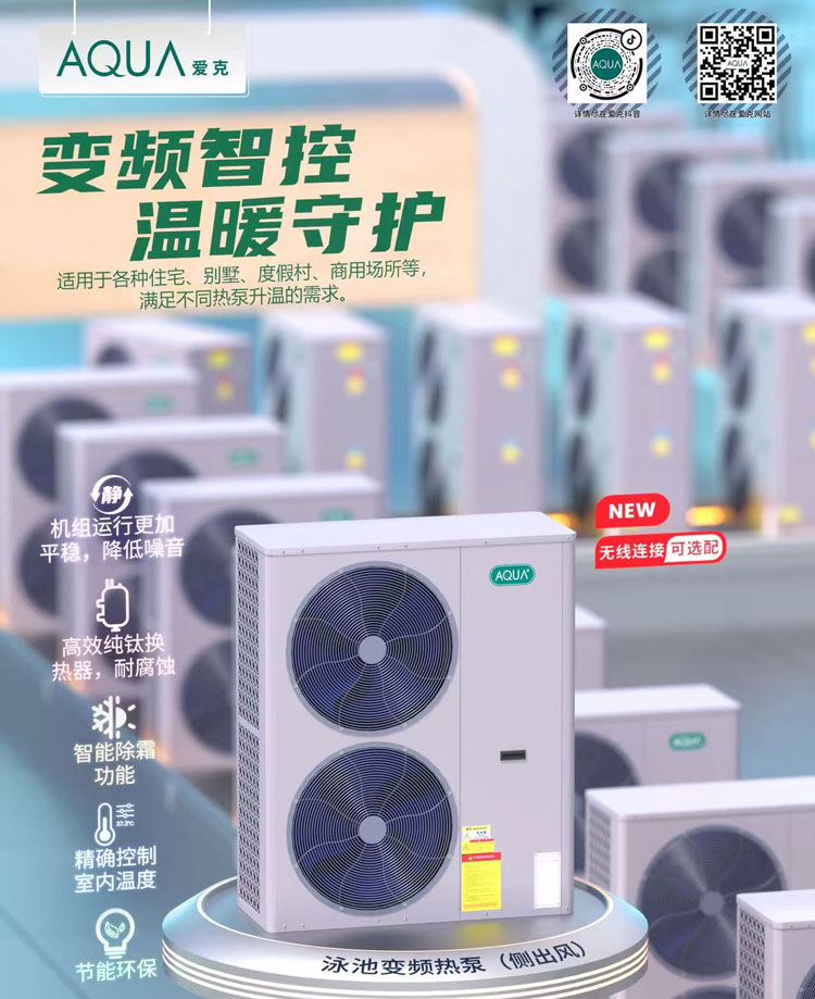 在消毒環(huán)節(jié),AQUA愛克中壓紫外線殺菌器通過200-400nm多波段紫外線,同步破壞微生物DNA、細胞壁及核酸,對細菌、隱孢子蟲等病原體滅活率達99.99%;恒溫除濕系統(tǒng)則通過空氣源熱泵與三集一體除濕熱泵的協(xié)同工作,將水溫穩(wěn)定在27±1℃、室溫控制在27-30℃、濕度維持在50%-75%的舒適區(qū)間,即便在-25℃的低溫環(huán)境下仍能穩(wěn)定運行。