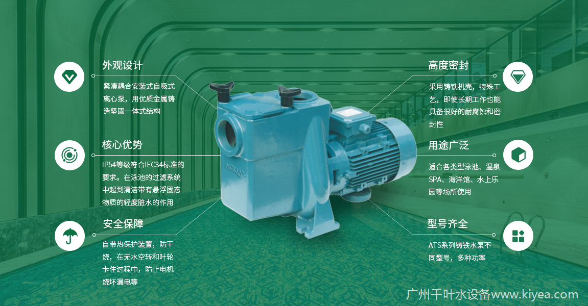 愛克系列水泵自帶電機過熱保護裝置,防止電機燒壞,保障人身安全;高度密封,嚴防漏水;透明厚實可視密封蓋設計,兼顧耐用;出廠前的壓力、電機、噪音測試,確保每臺水泵性能高標準。